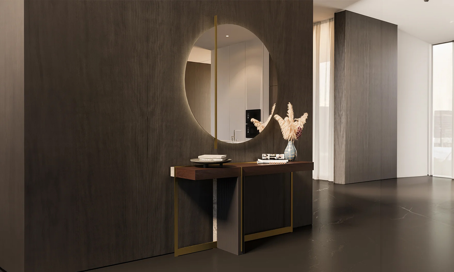 يُصنع الدريسير من مواد عالية الجودة تمنحه المتانة والاستدامة، بينما يبرز سطحه الواسع كخيار مثالي لعرض الإكسسوارات أو المرايا أو القطع الزخرفية. يتميز بدرجات ألوان هادئة وتفاصيل ناعمة تبرز الطابع الفاخر للتصميم.
